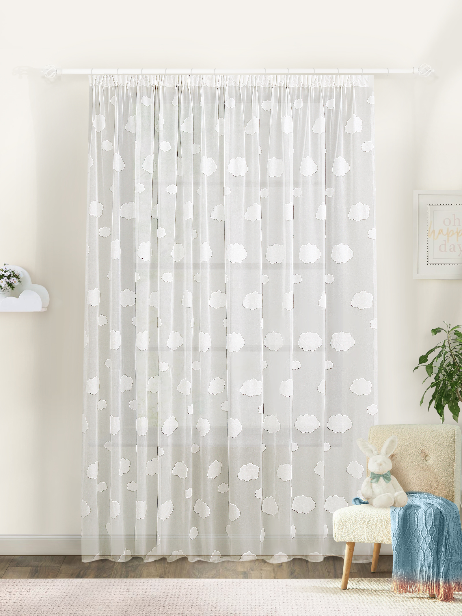 Выбирая занавески для детской комнаты, хотите, чтобы они были функциональными и стильными? Тогда обратите свой взгляд на портьеры с объемным рисунком в виде облаков– настоящая находка для комнаты девочки! Они не только прекрасно предотвращают попадание от солнечных лучей, но и дополняют общий интерьер детской, завершая его. Портьеры на окно – это не только визуальный акцент, но и полезный элемент спальни ребенка. Эти солнцезащитные занавески изготовлены из высококачественного материала, приятного на ощупь. Декоративный рисунок в виде пушистых облачков позволяет чувствовать себя Вашему малышу комфортно и уютно. Эти шторы на окно – идеальное решение для тех, кто стремится сделать свою детскую комнату более яркой и привлекательной, без ущерба для практичности и комфорта вашей малышки или малыша. Данный комплект штор рекомендуется для детской комнаты в виду её уникальности и соответствия многим параметрам, требуемым родителями для детской комнаты. Не упустите возможность облагородить, и сделать её более красивой и удобной!