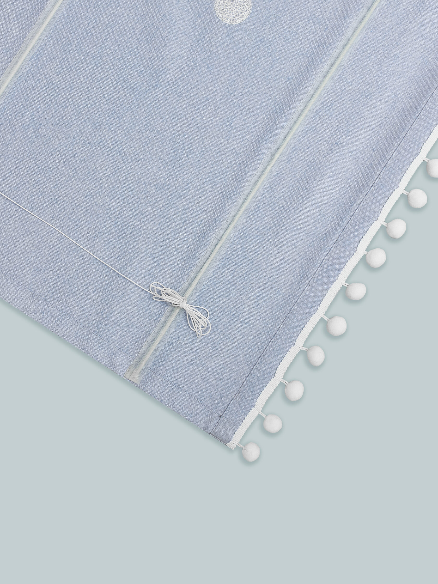 Римская штора голубого цвета с объемными облаками создаст уют в детской комнате. Изготовленная из ткани высокого качества, с затемнением 70% , состав 100% полиэстер. Римская штора обеспечивает надежную защиту от солнечных лучей, создавая комфортное и уютное пространство в вашем доме. Мягкий материал не только придает интерьеру изысканность, но и обеспечивает превосходное затемнение помещения, позволяя вам наслаждаться отдыхом и сном в любое время суток. Превосходное качество пошива гарантирует долгий срок службы. Штора поставляется в собранном виде, на карнизе для римских штор. Все необходимые крепления входят в комплект. Подъемный механизм располагается с правой стороны. Штору можно стирать в машинке предварительно сняв ее с карниза и вытащив утяжелитель.